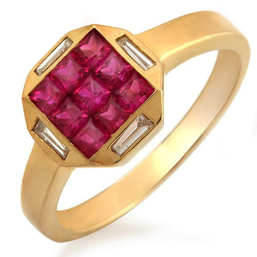 Ruby with Baguette Diamonds 18k Yellow Gold Ring