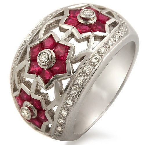 Ruby & Diamond accented in Flower Design Ring, 18k White Gold