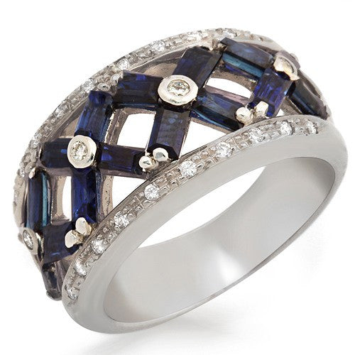 Blue Sapphire & Diamond Beveled Style Ring, 18k White Gold