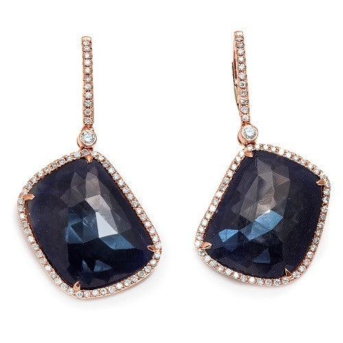Blue Sapphire Slice & Diamond Earrings, 14k Rose Gold