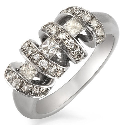 1 Ct Princess and Round Diamond Ring, 18k White Gold