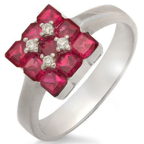 Stunning Squire-shaped Princess-cut Invisible Setting Diamond Center and Ruby Ring 18K White gold.