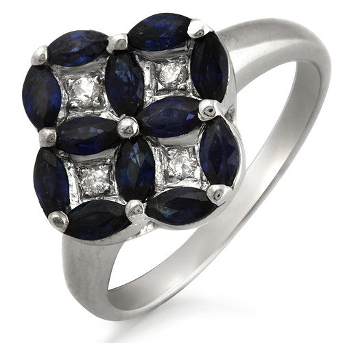 Floral Style Blue Marquise Sapphire & Diamond Ring, 18k White Gold