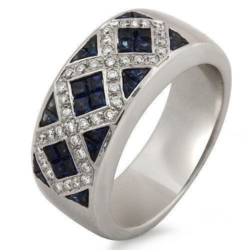 Invisible Set Grid Style Blue Sapphire & Diamond Ring, 18k White Gold