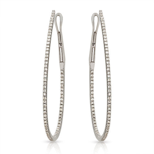 0.36 Carat Diamond Hoop Earrings, Drop Shaped Style in 18k White Gold